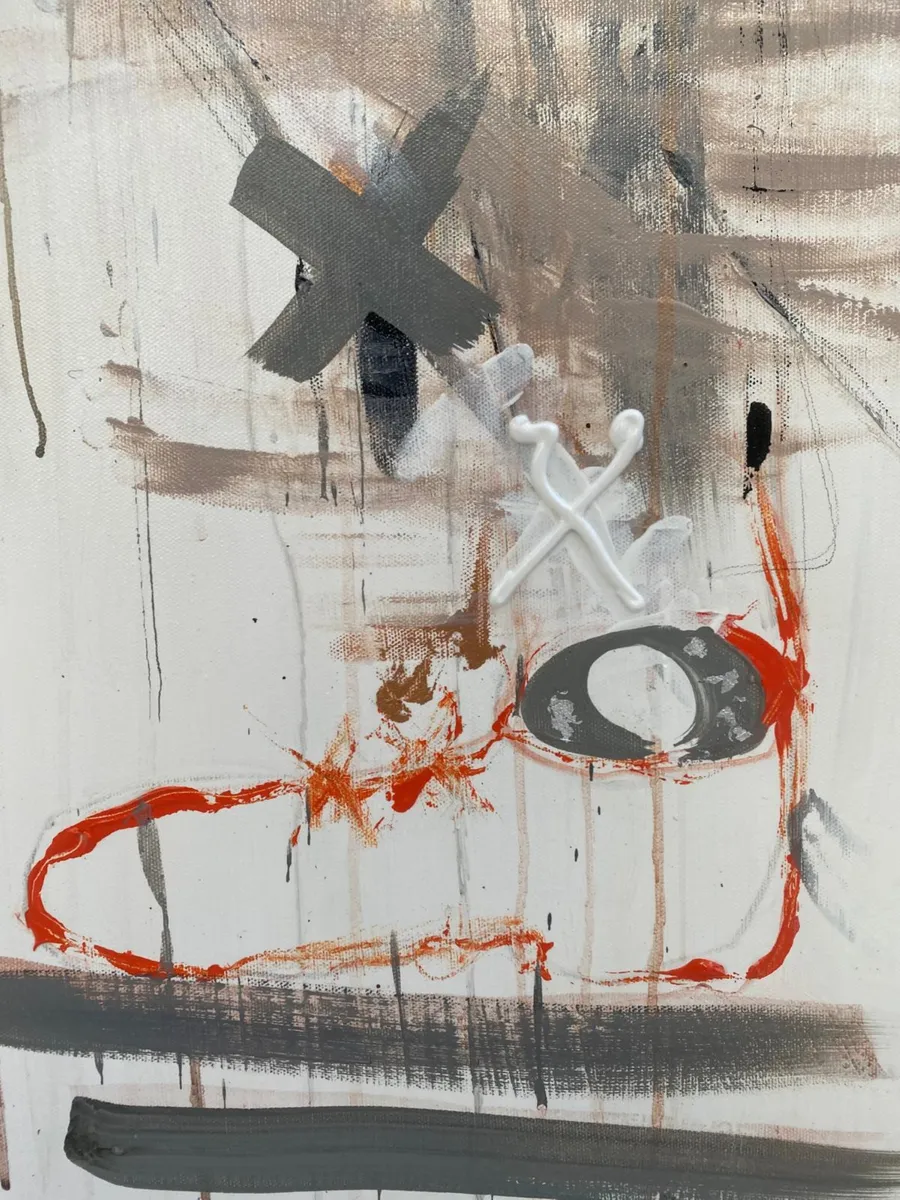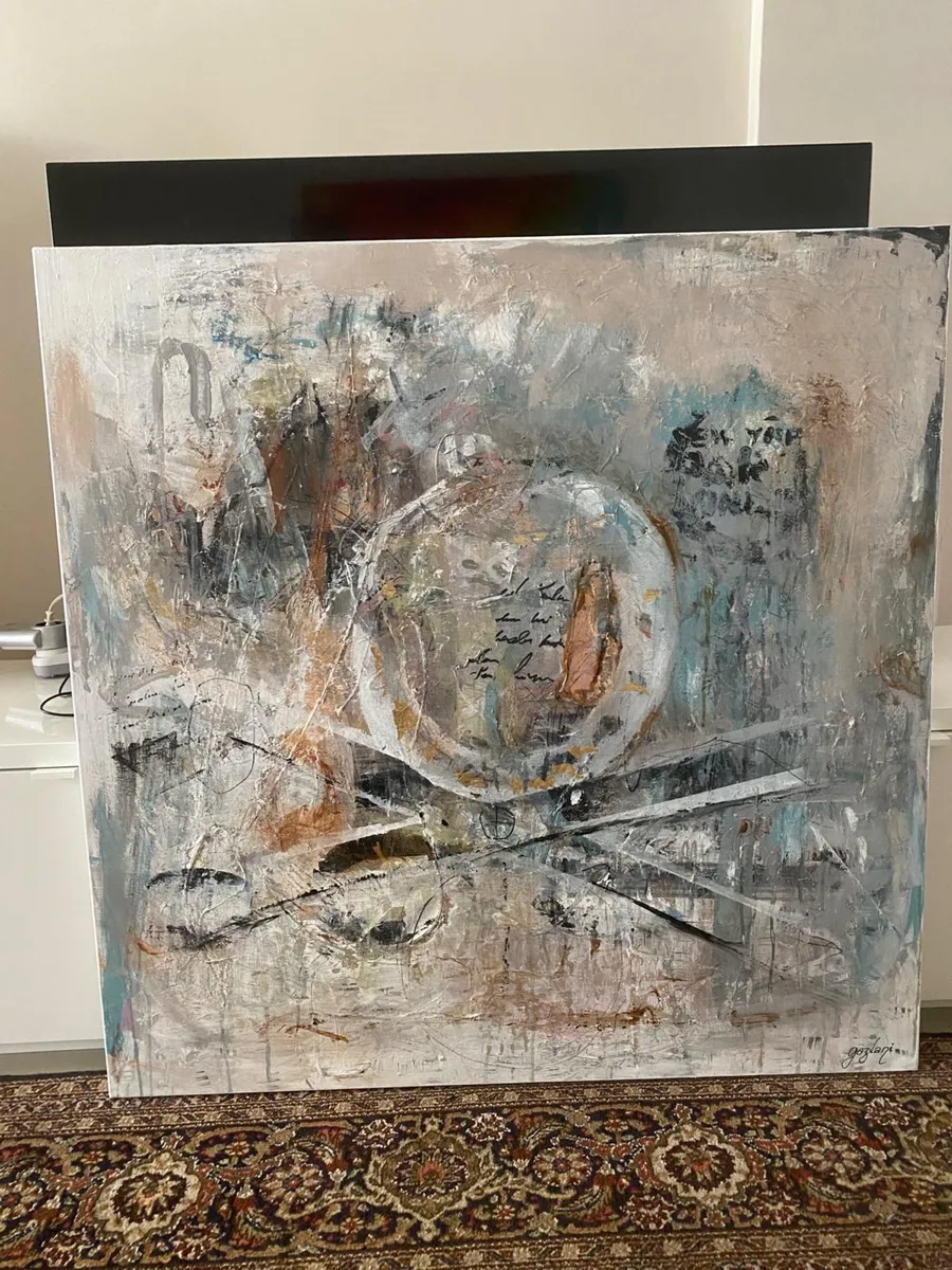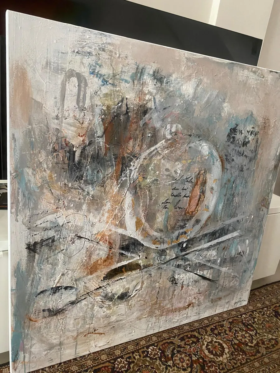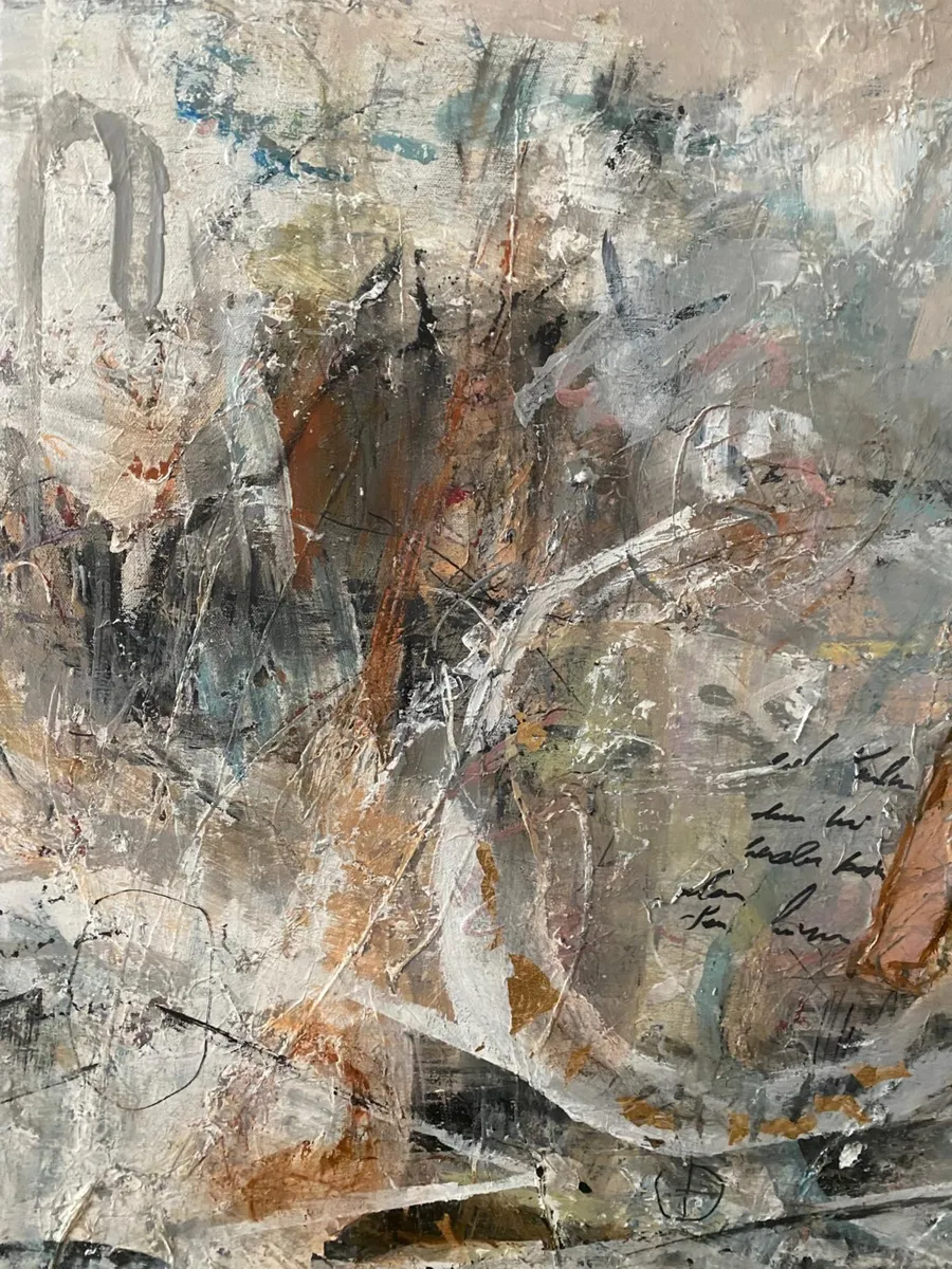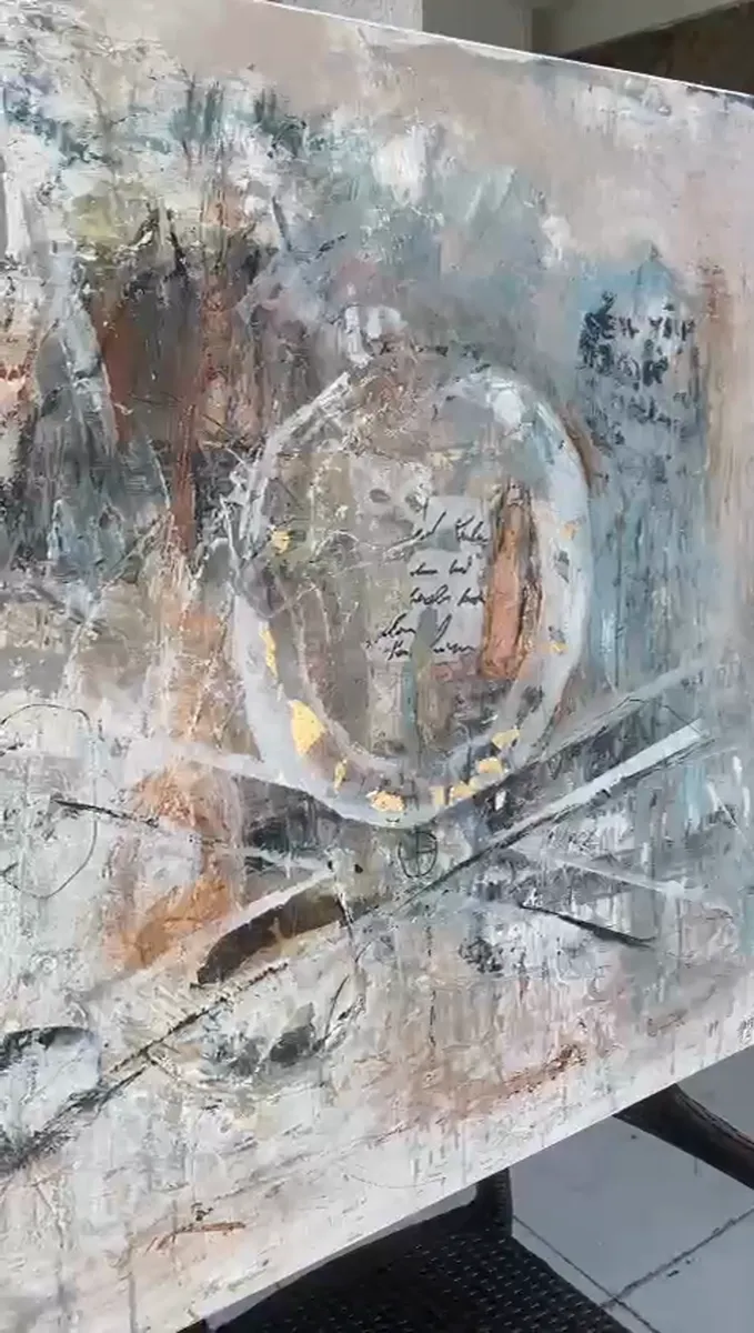 Endless emotional loop In this artwork I would like to visualise, the faint outlines and layered textures to evoke a sense of memories slipping through our grasp, like sand through fingers. The subtle hints of color, barely contained within the form of a delicate glass, suggest fleeting moments of love, treasured but impossible to hold forever. Words and shapes blur into one another, creating a quiet, wistful melody—like a letter left unfinished, or a promise whispered but never spoken aloud. This painting feels like the lingering trace of a past romance, a reminder of how love, even when gone, leaves traces that never fully fade. love feels like a spiral—circling back on itself, pulling us in deeper with every turn. We find ourselves moving through the same emotions, reliving joy, longing, and heartache, as if caught in a beautifully relentless dance. This loop is both comforting and haunting, a reminder that some feelings never truly fade; they continue to echo, wrapping around us like a familiar melody that we can't let go. It's the story of love’s infinity, a cycle that captivates and consumes, leaving traces that linger, no matter how far we try to move away.