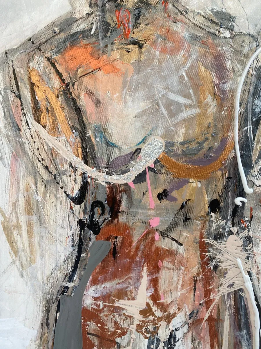 Rhythm of Colors In Rhythm of Colors, my each brushstroke feels like a heartbeat, each splash of color a whispered word between lovers. Throughout of my artwork I tried to create a dance of emotions—a warm pulse of oranges and pinks entwines with cool blues and grays, just as two souls find harmony in their differences. The layers are tangled yet beautifully in sync, like the ebb and flow of a shared life. I try to encourage the audience captures the feeling of being swept up in love’s chaotic, unpredictable rhythm, where every color and line feels spontaneous, yet somehow meant to be.