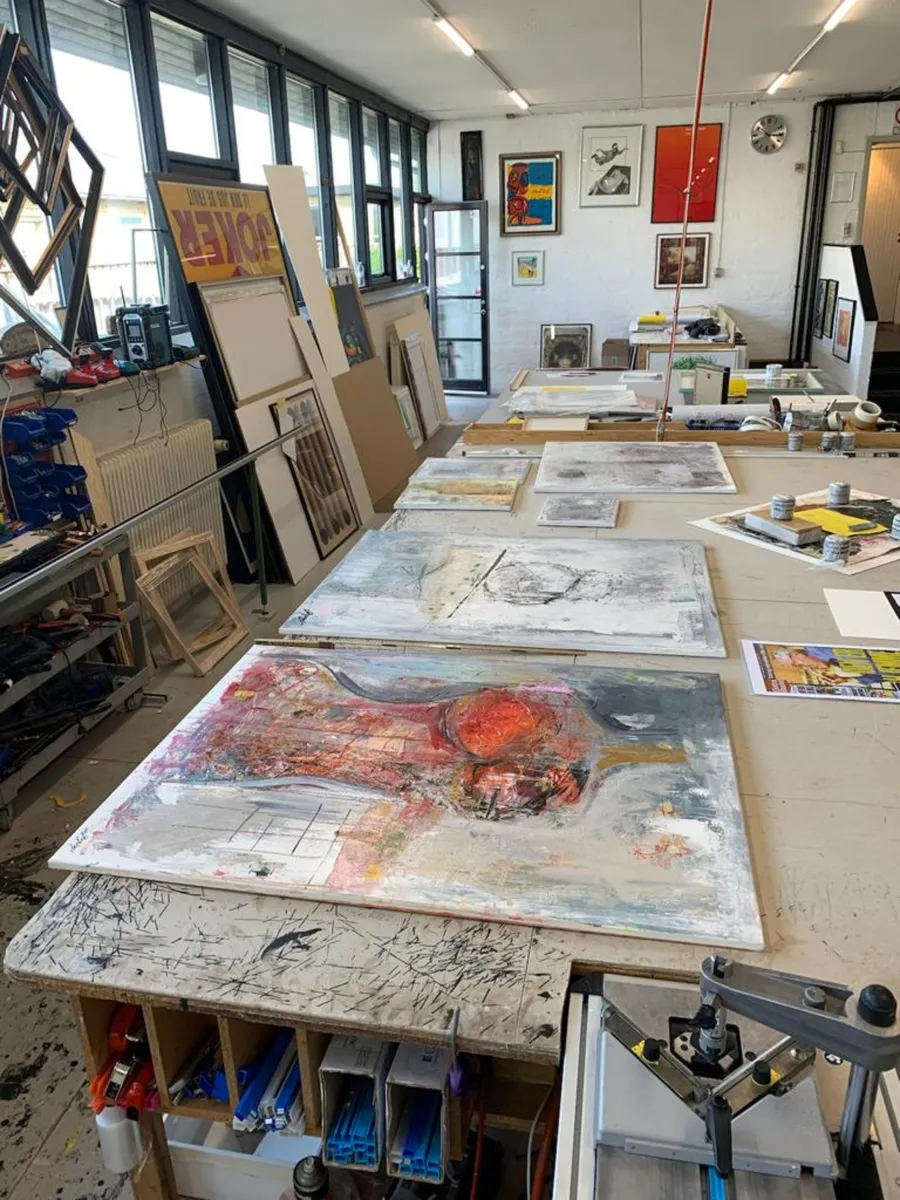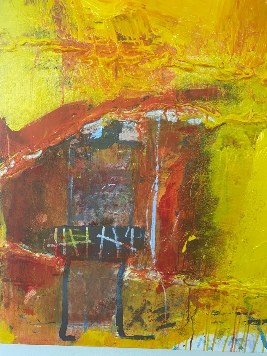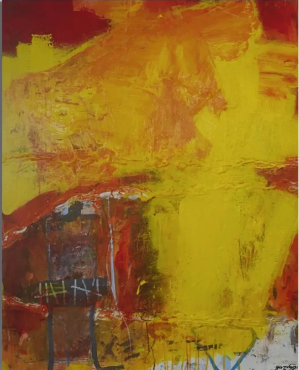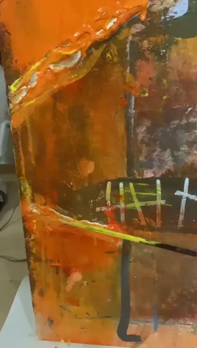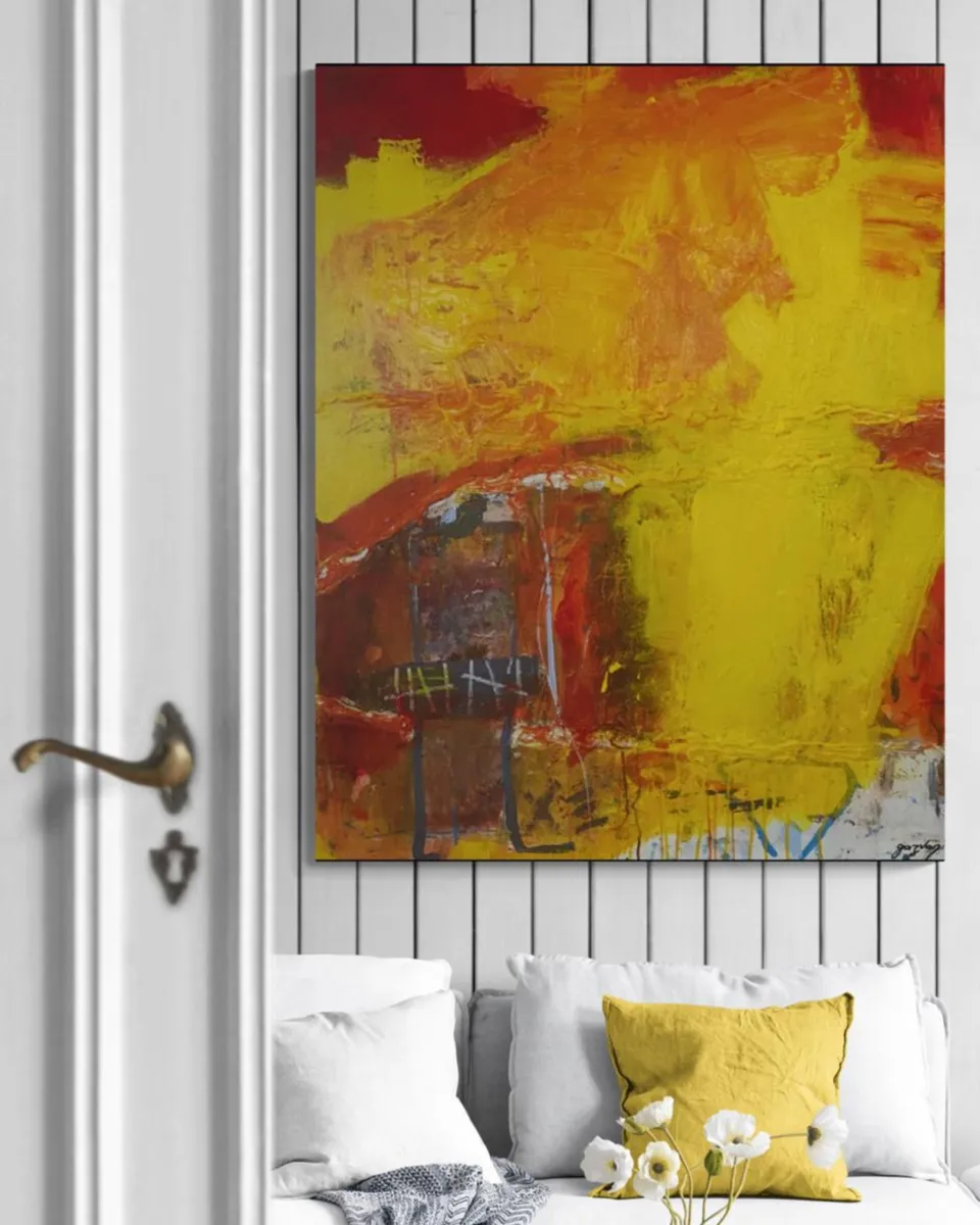 Energetic strokes and warm colors reflect the vibrancy and passion within human relationships. This painting draws its inspiration from the exciting and rhythmic energy created by mutual love and understanding, much like the beat of a heart.